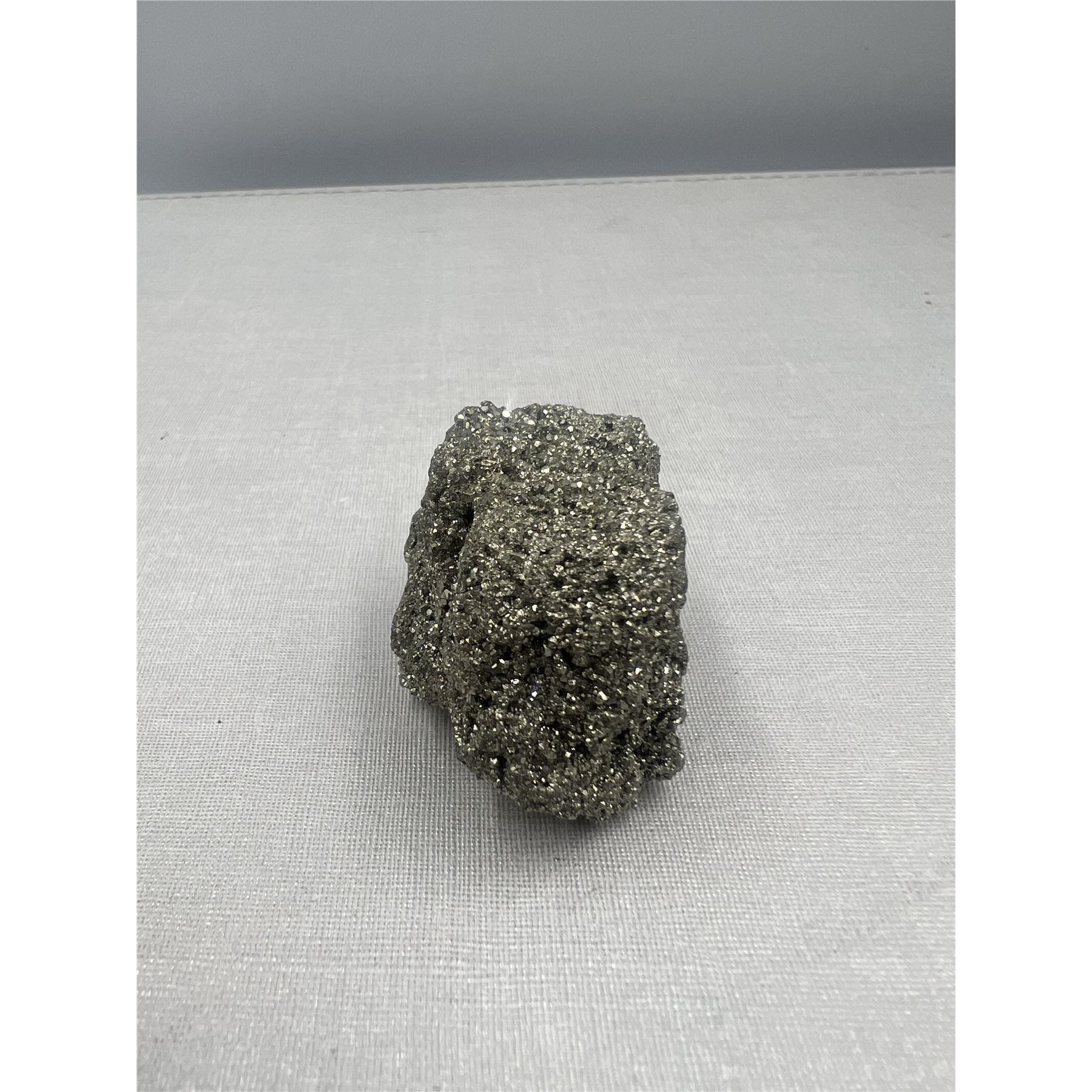 1.5 INCH HIGH GRADE PYRITE FROM PERU SHINY FORMATION.WILL RECEIVE SIMILAR PYRITE ROUGH CLUSTER .