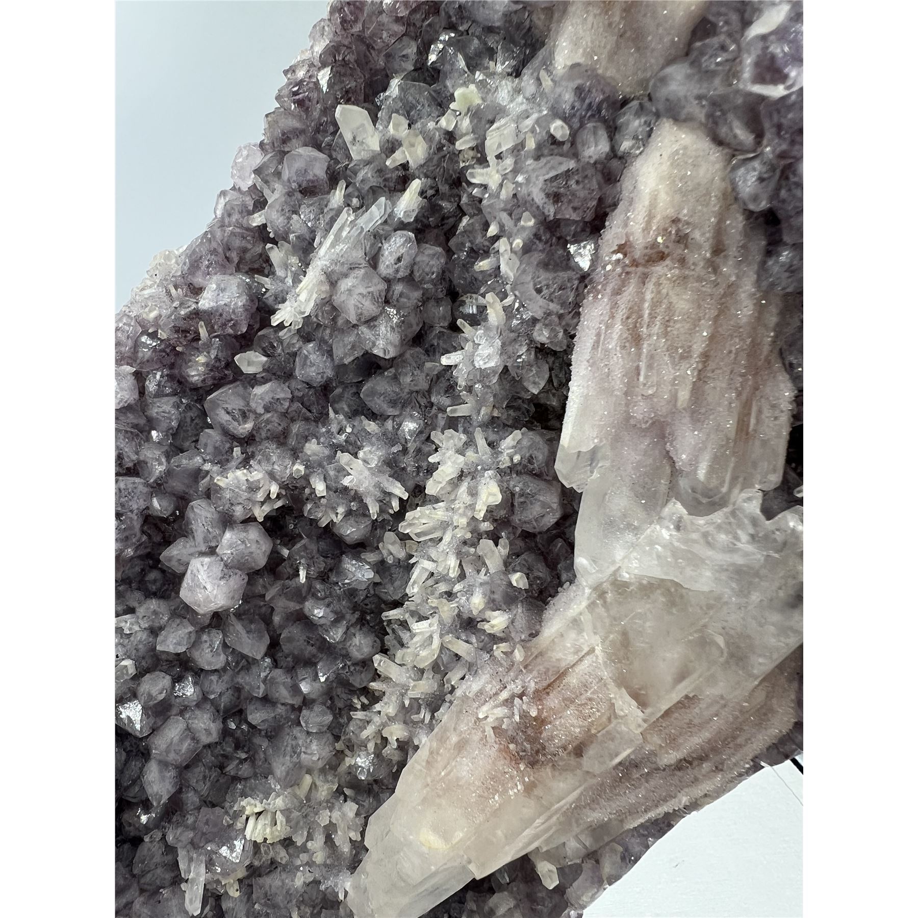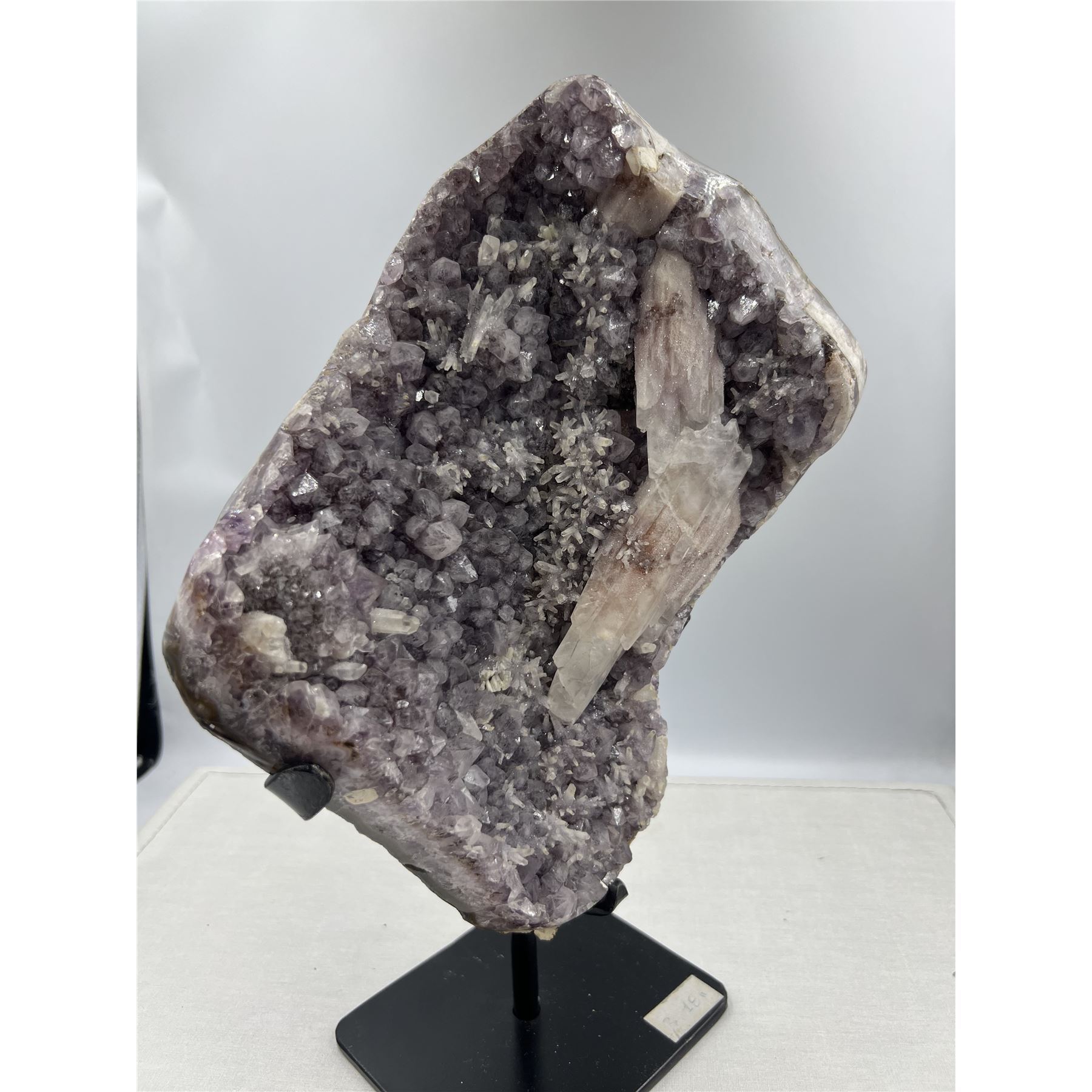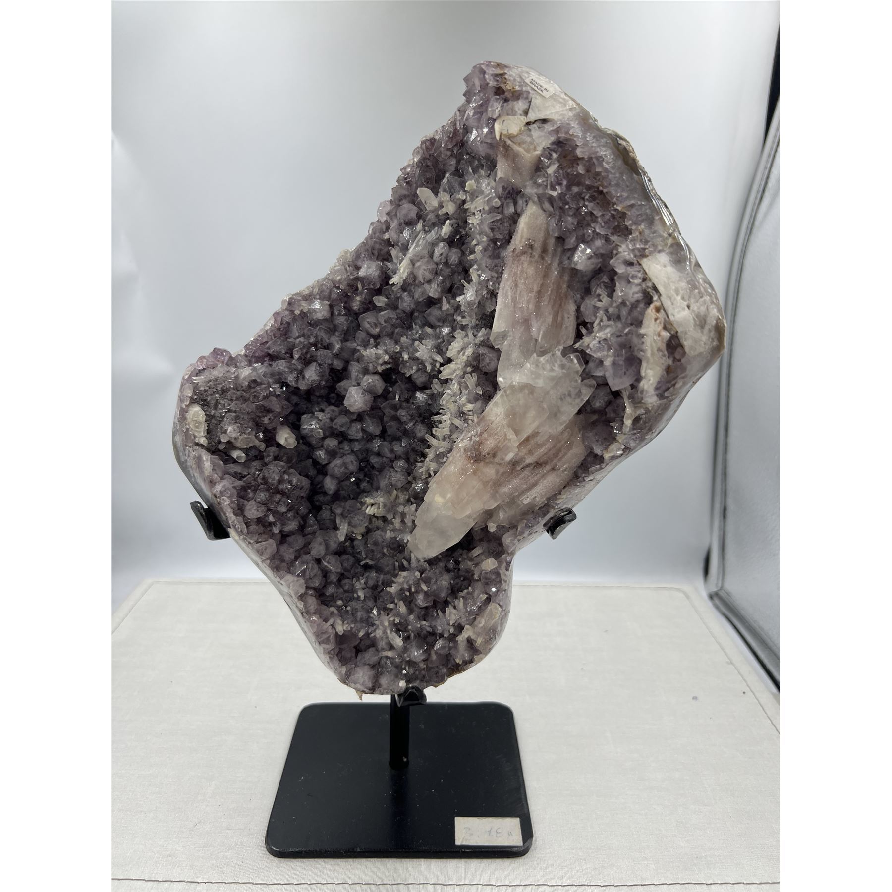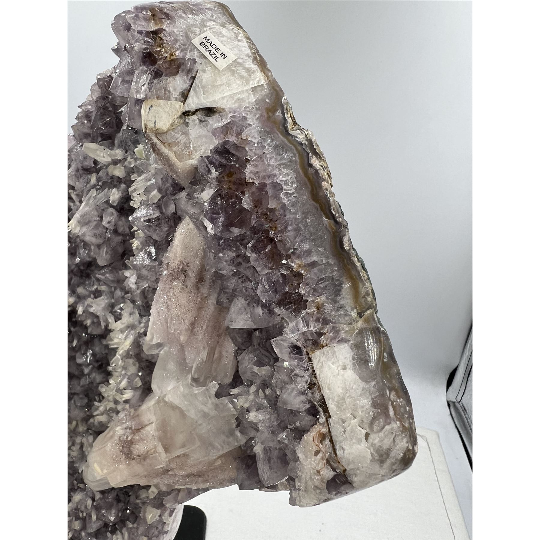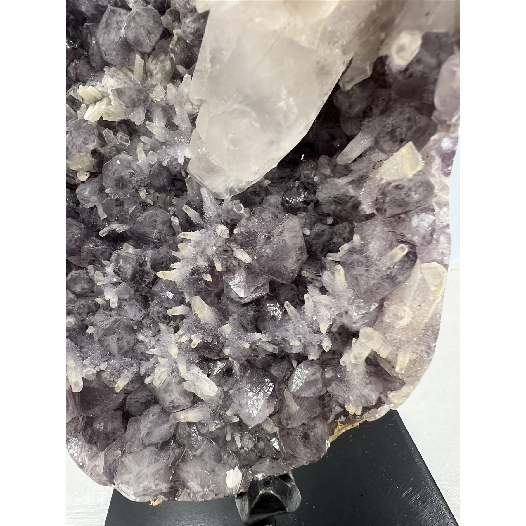 13 X 9 INCH AMETHYST WITH SUGAR COATED CALCITE ON STAND FROM BRAZIL