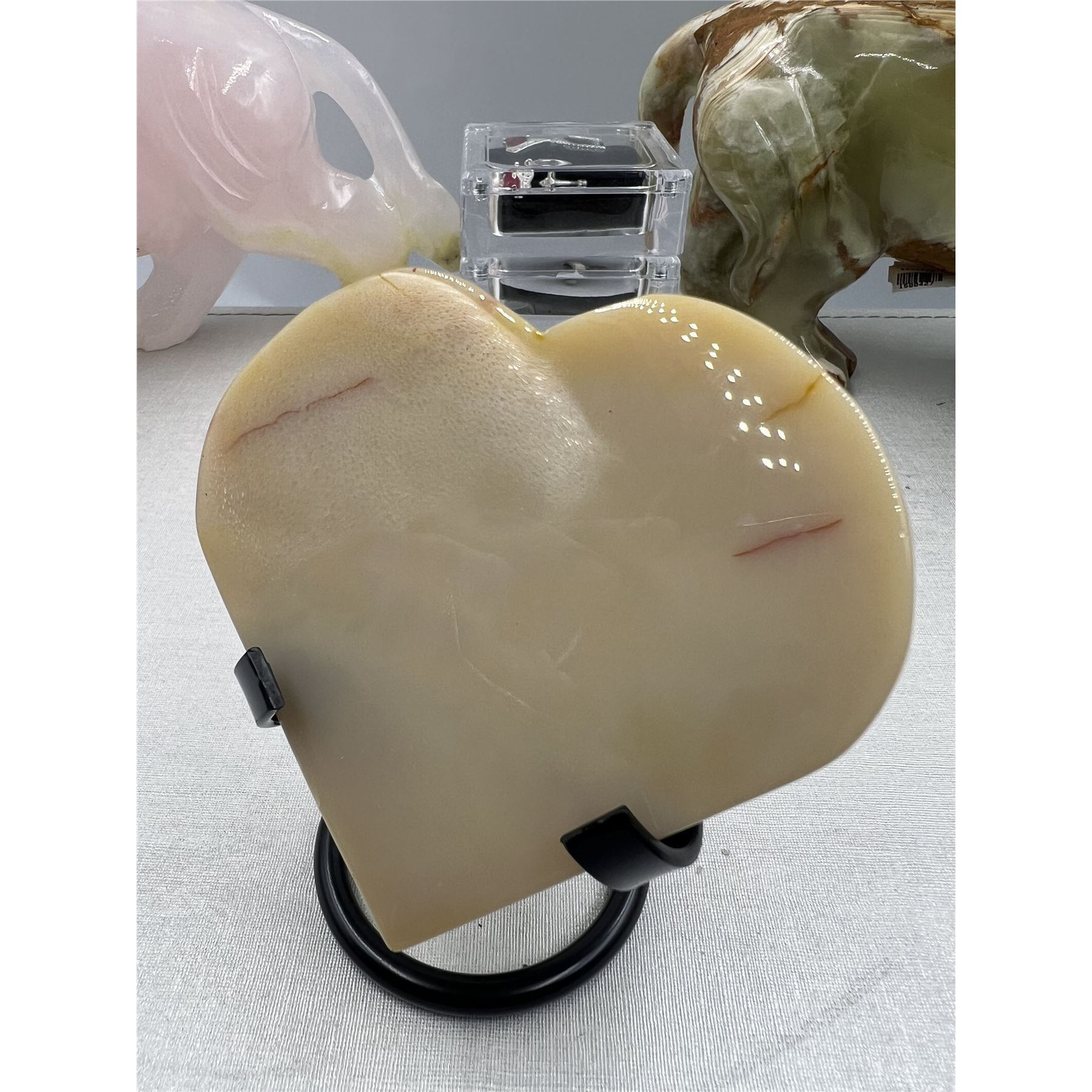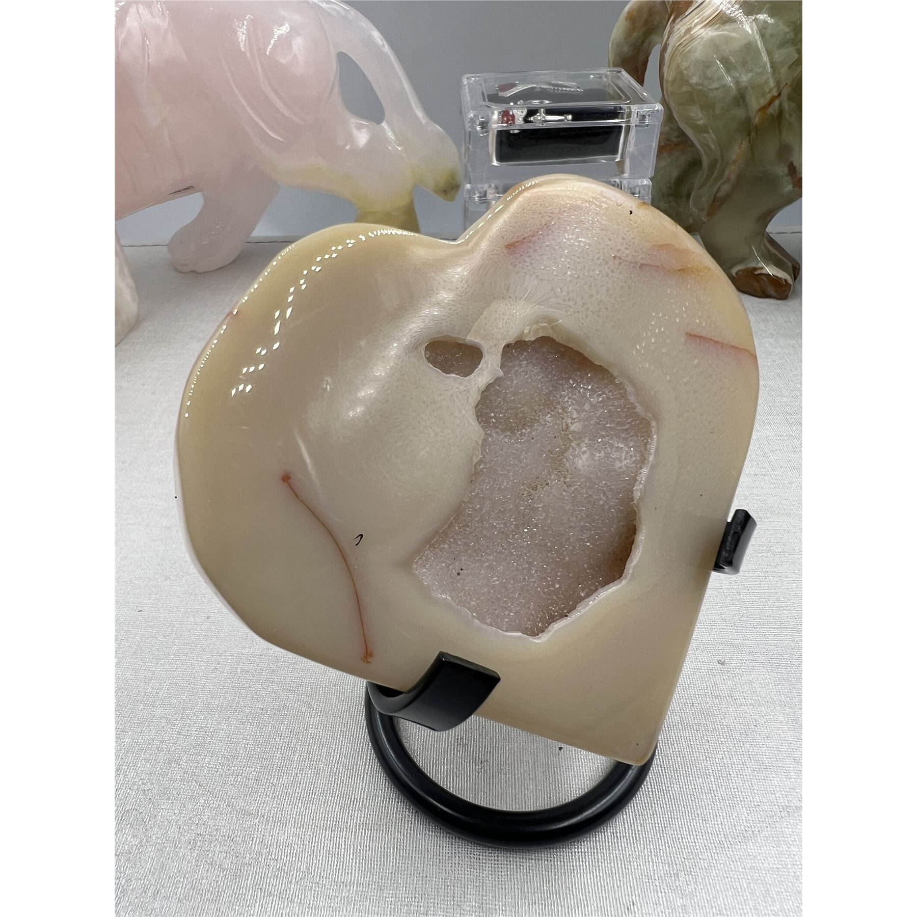 3.1 INCH AGATE SLICE HEART WITH DRUZY