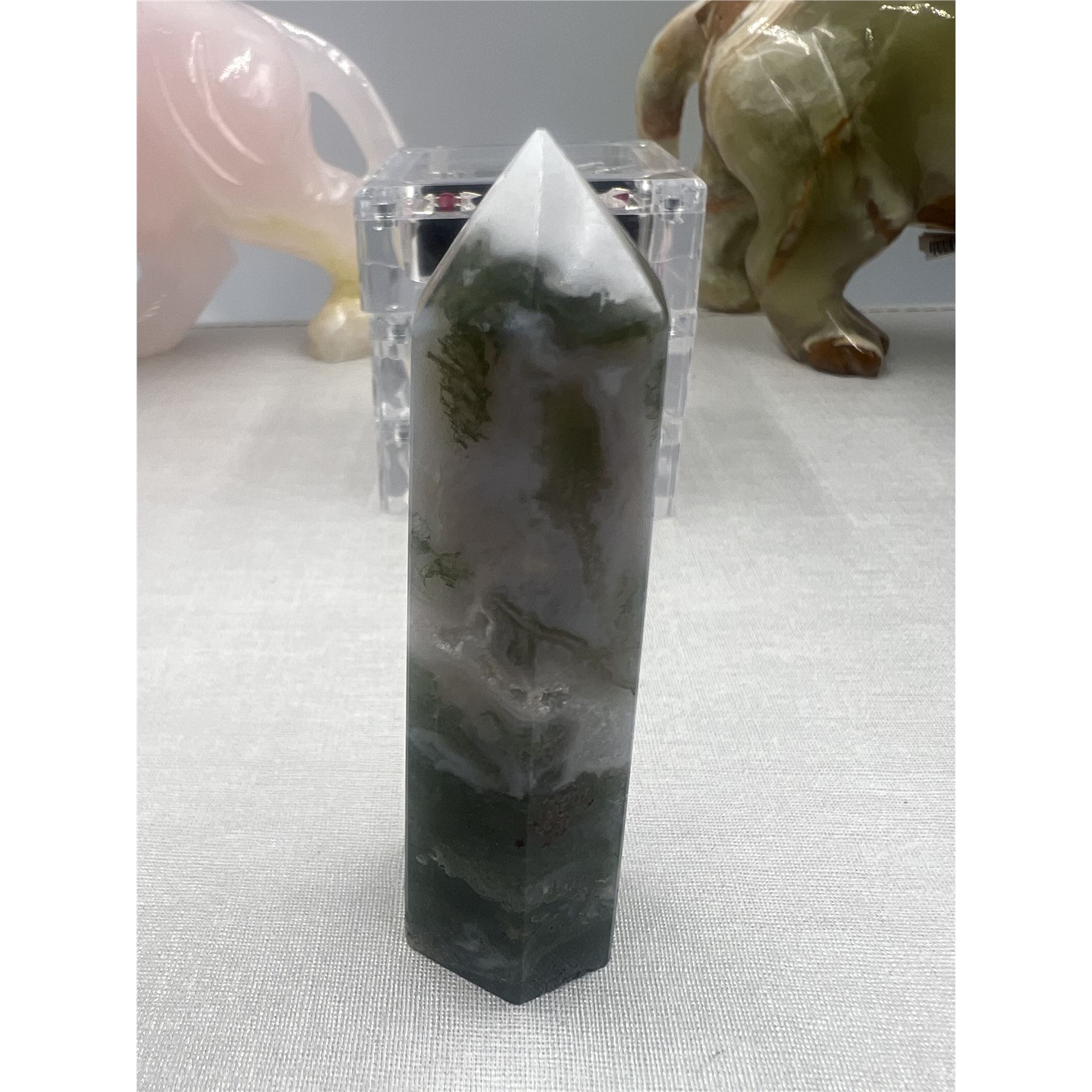 3.5 INCH MOSS AGATE WITH DRUZY TOWER