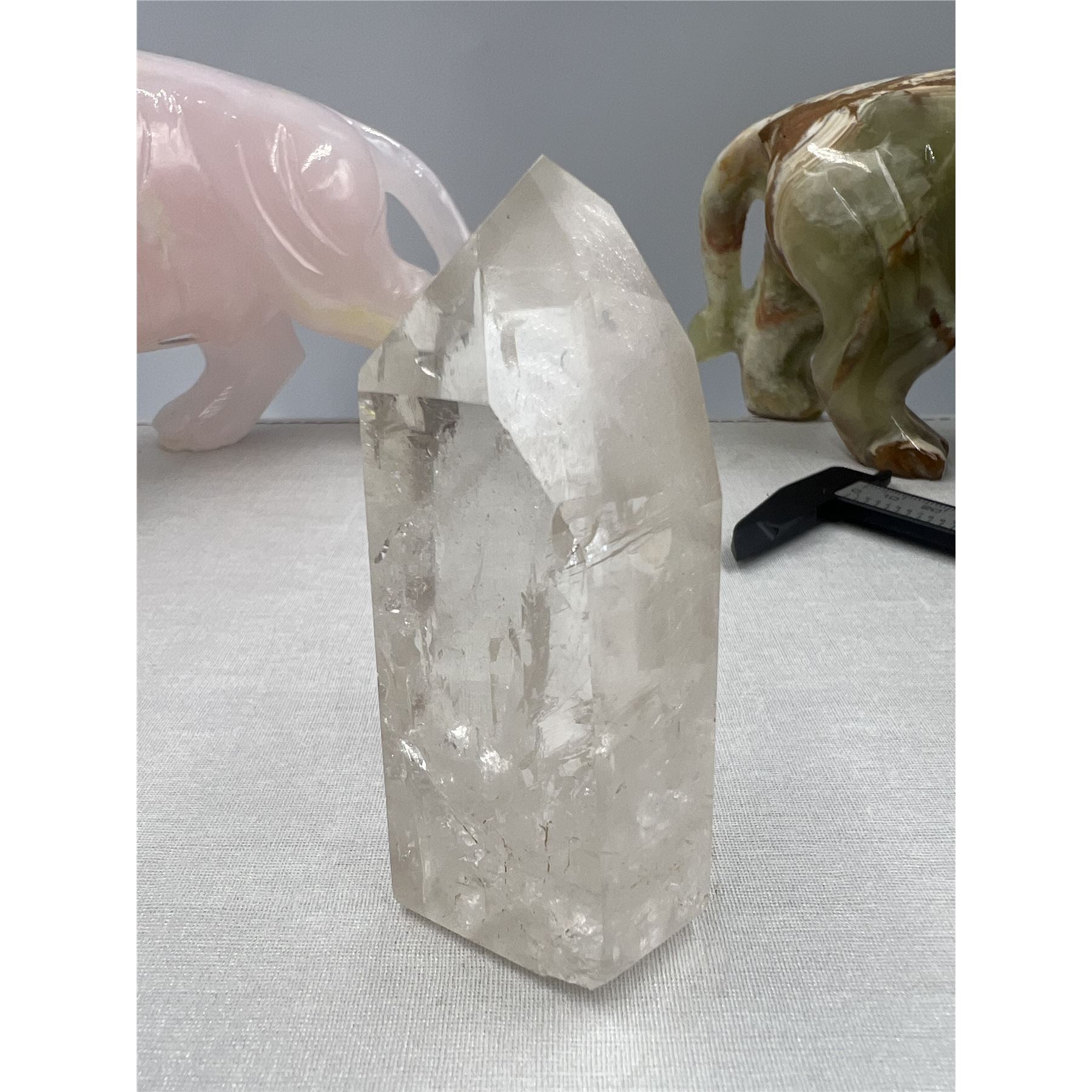 3.5 X 2.3 INCH CLEAR QUARTZ TOWER WITH AURA