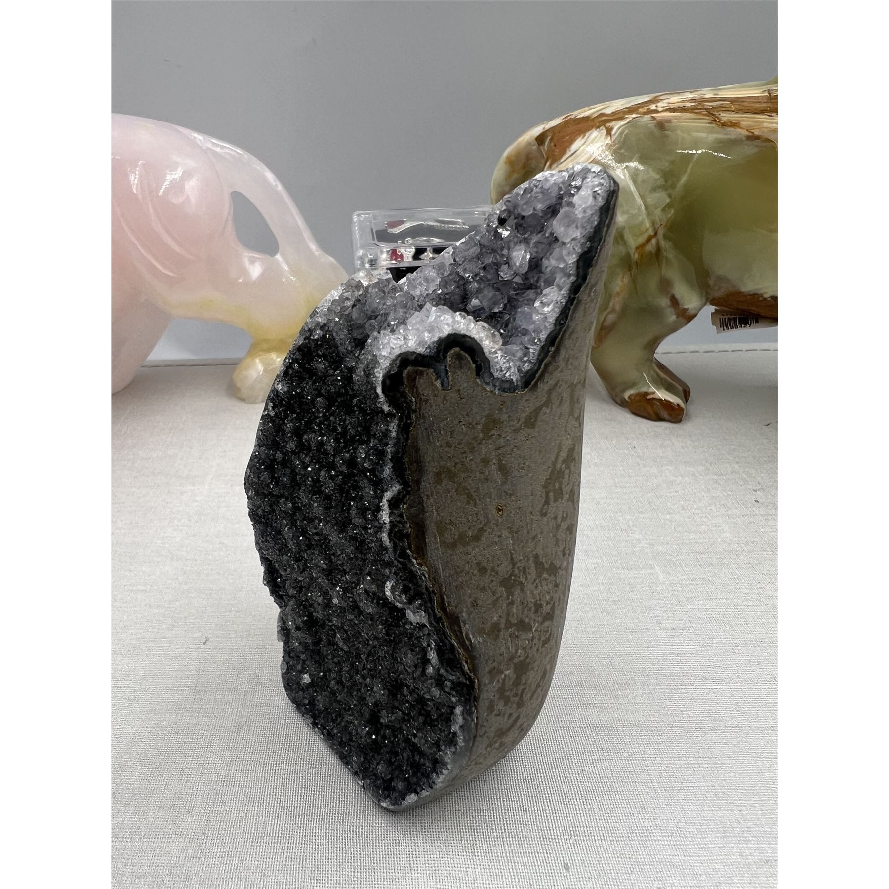 4.1 INCH BLACK AMETHYST GEODE FLAME (BEAUTIFUL SHINE)