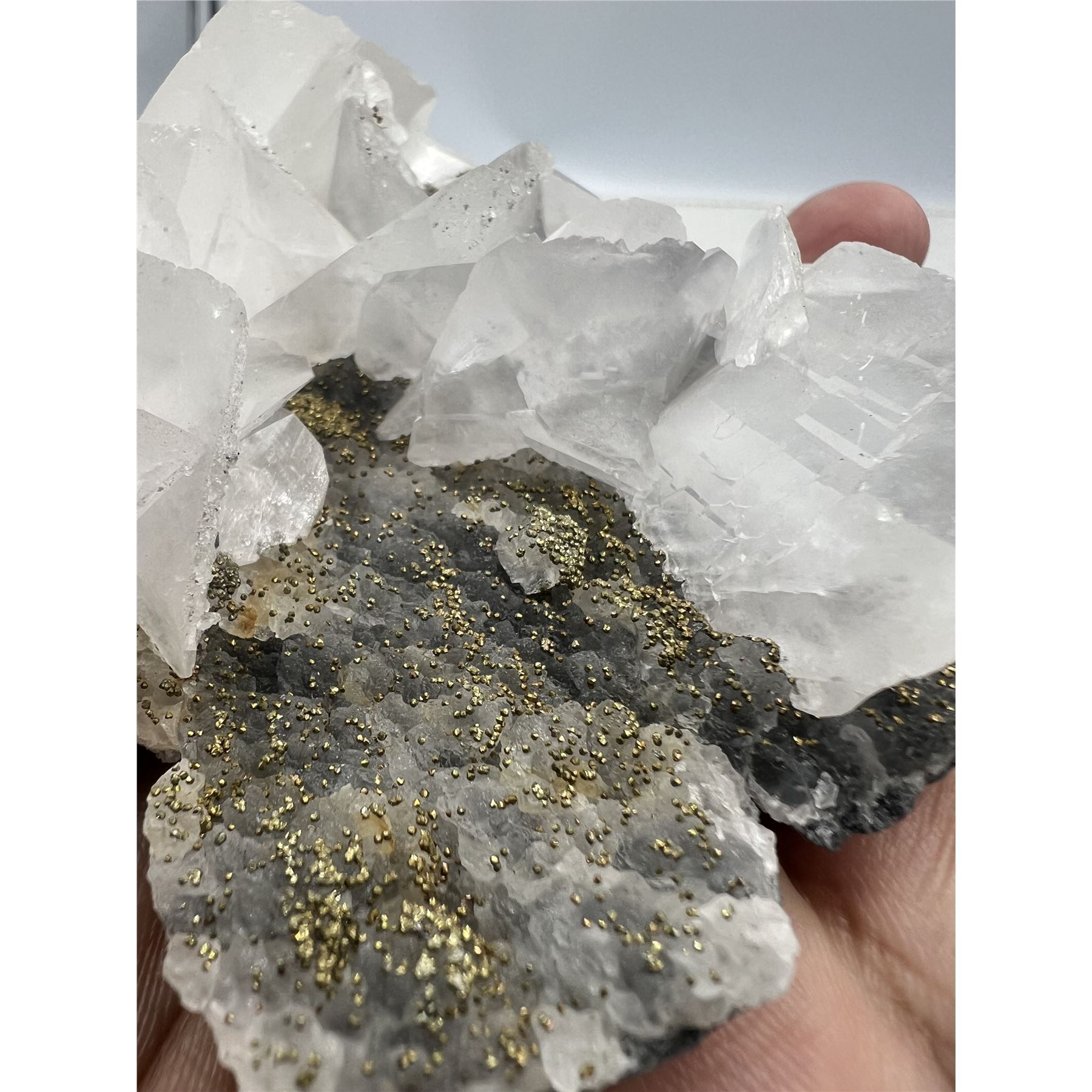 4.5 X 3.7 CALCITE PYRITE CHIP FORMATION SPECIMEN