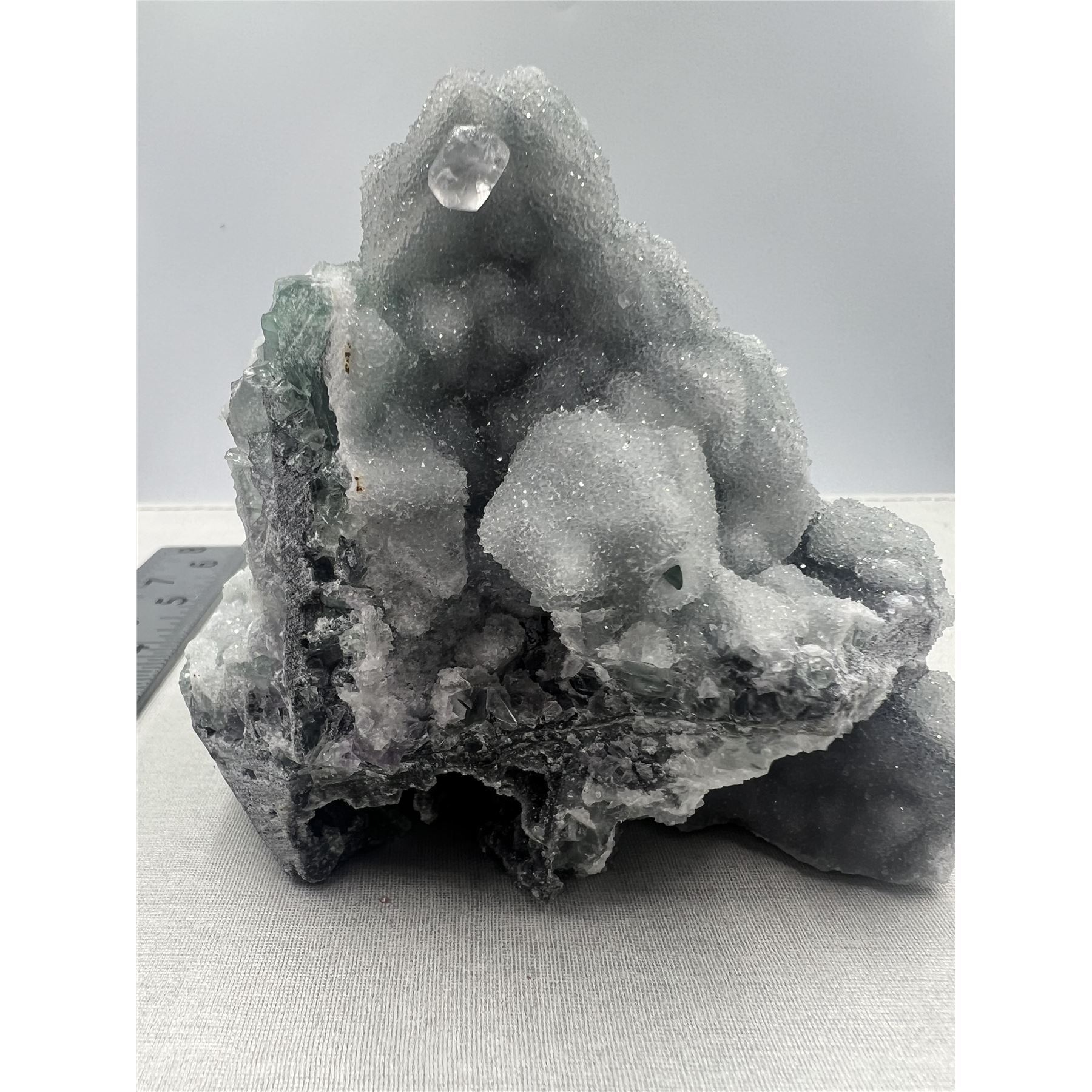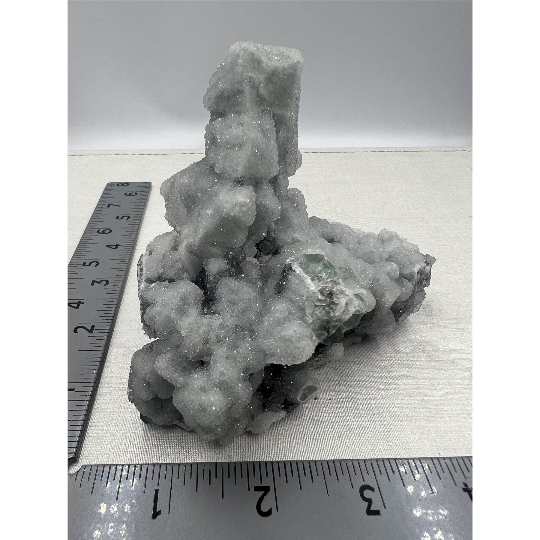 4 X4 INCH GREEN FLOURITE WITH SUGAR CALCITE SPECIMEN