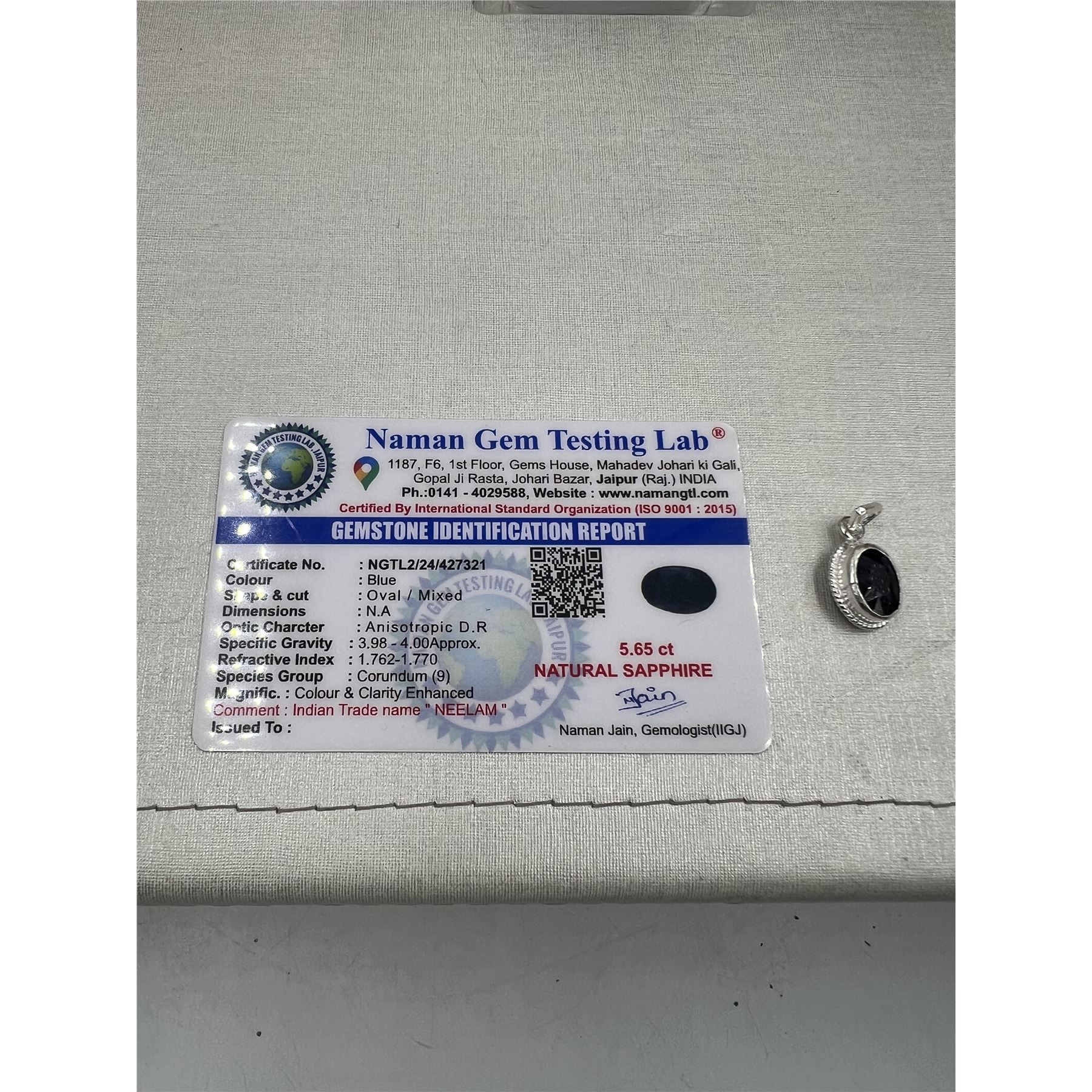 5.65 CT NATURAL SAPPHIRE SILVER PENDANT OVAL CUT CERTIFICATION