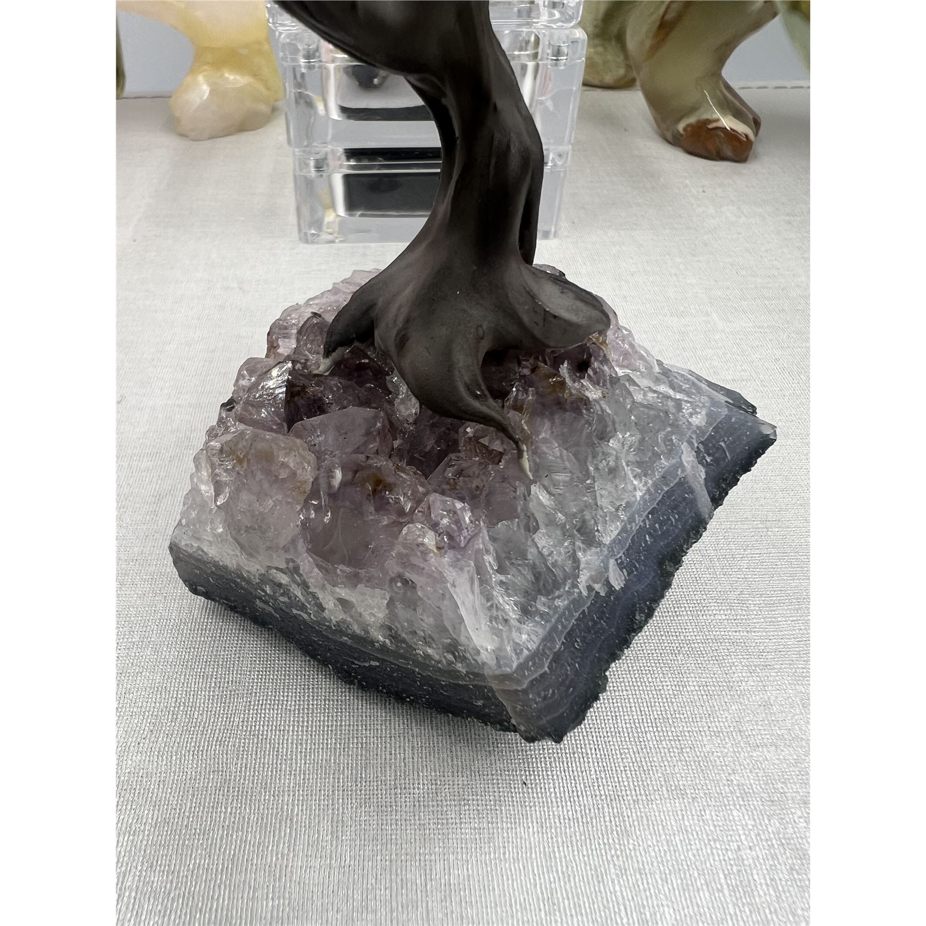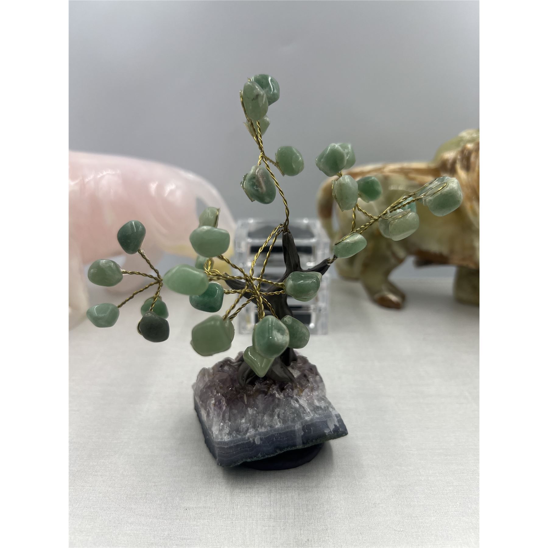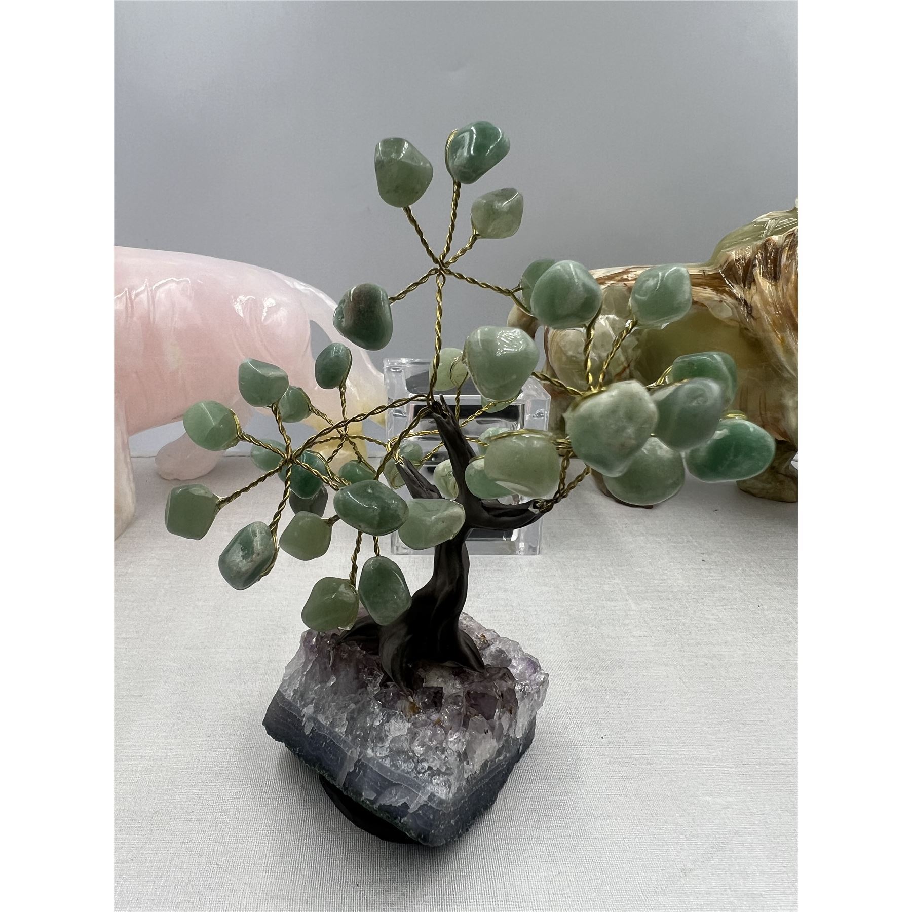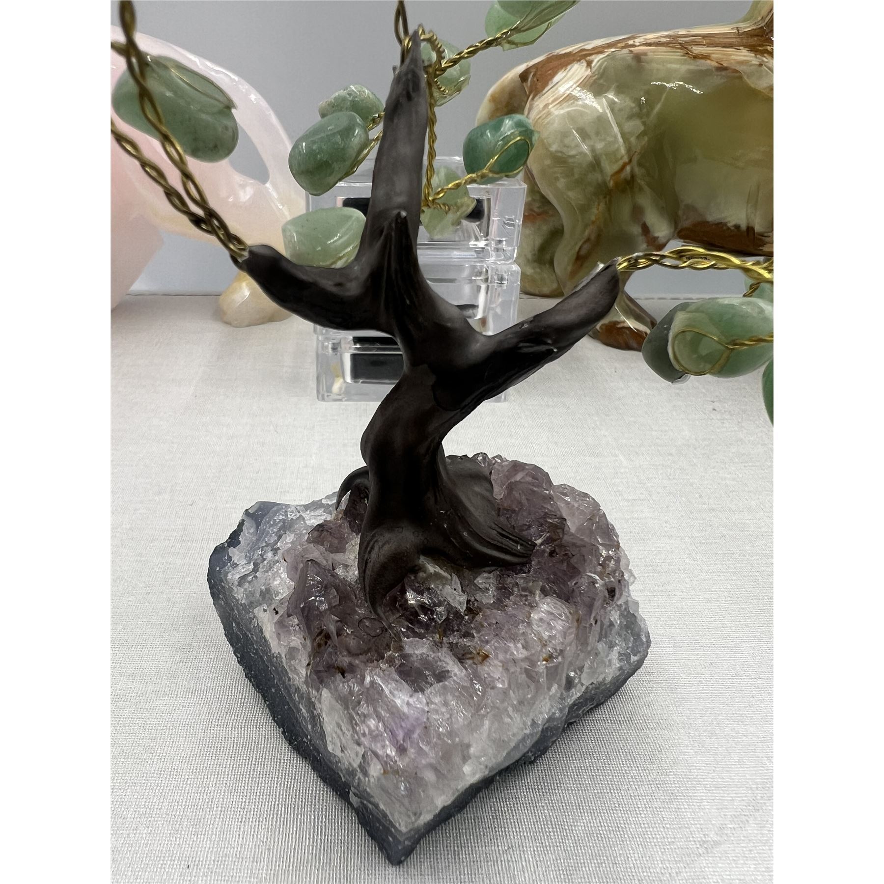 6.2 X 6 INCH GREEN AVENTURINE BONSAI TREE WITH AMETHYST BASE