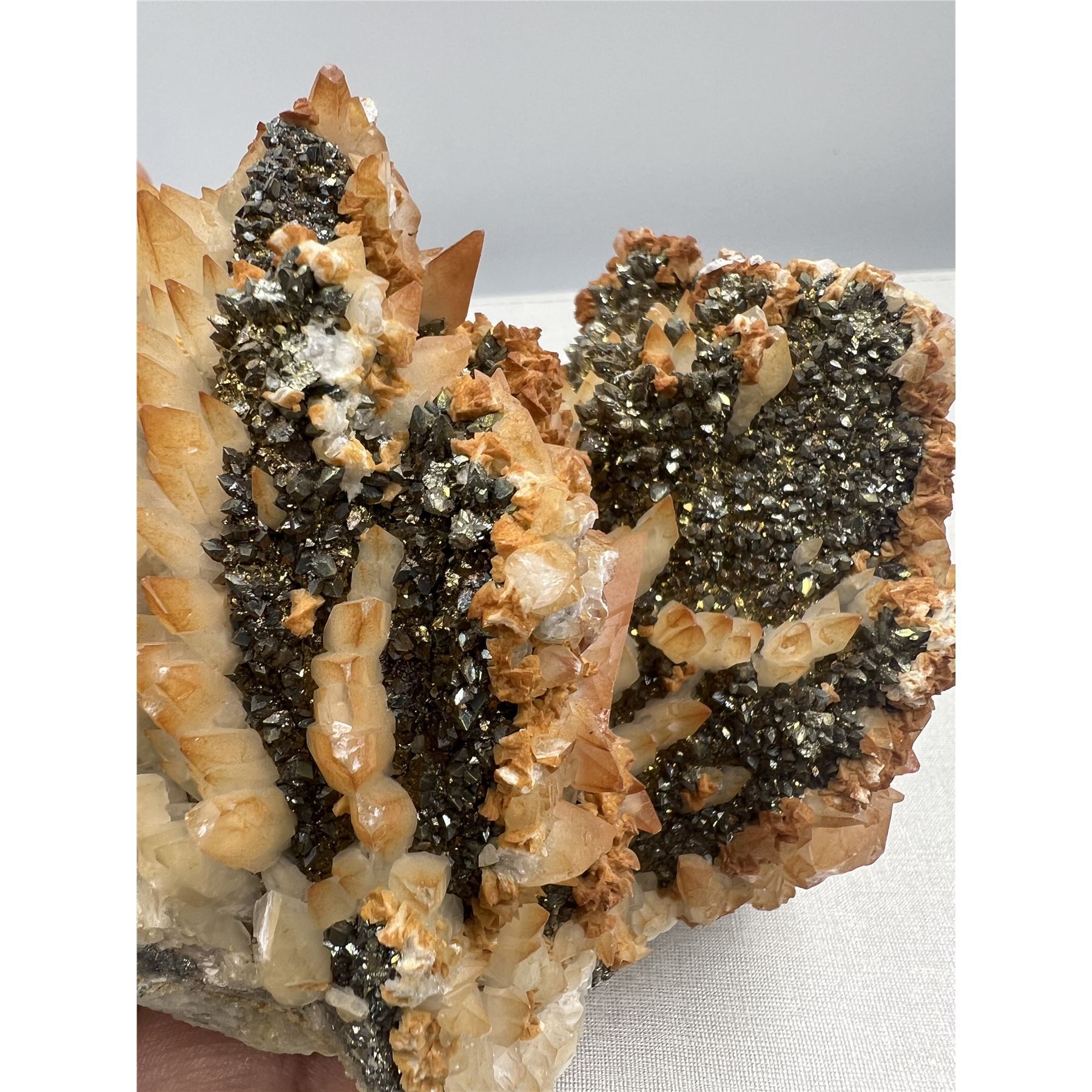 6 X 4.5 INCH DOG TOOTH RED CALCITE SPECIMEN WITH PYRITE