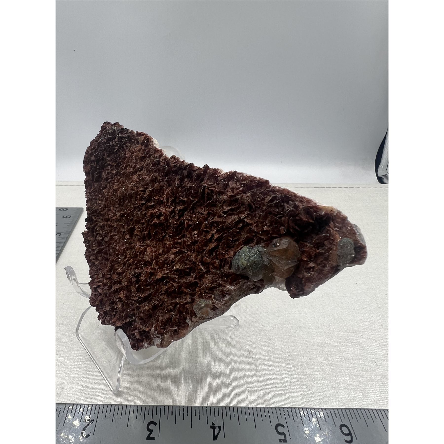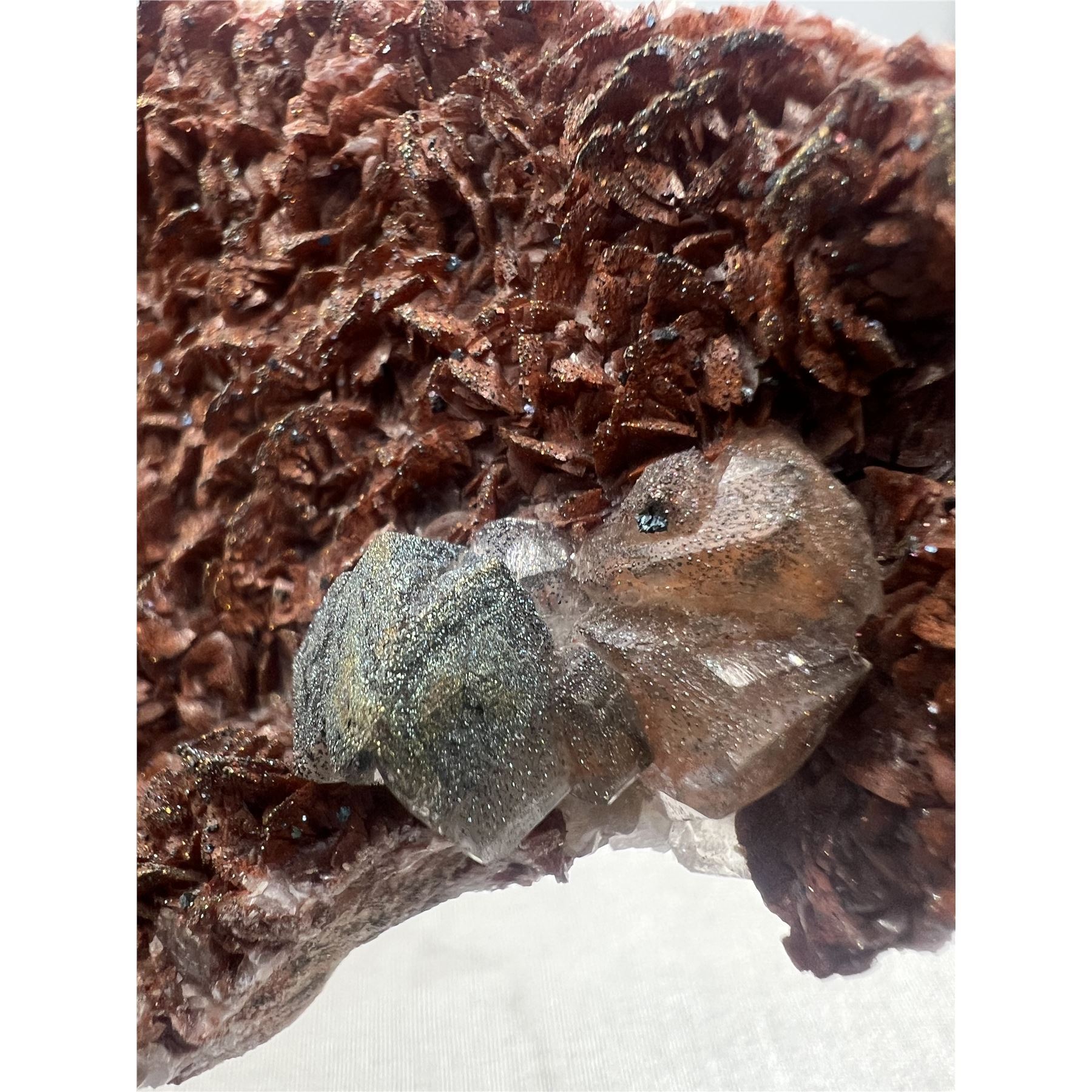 6 X 4 INCH RED CALCITE WITH PYRITE SPECIMEN