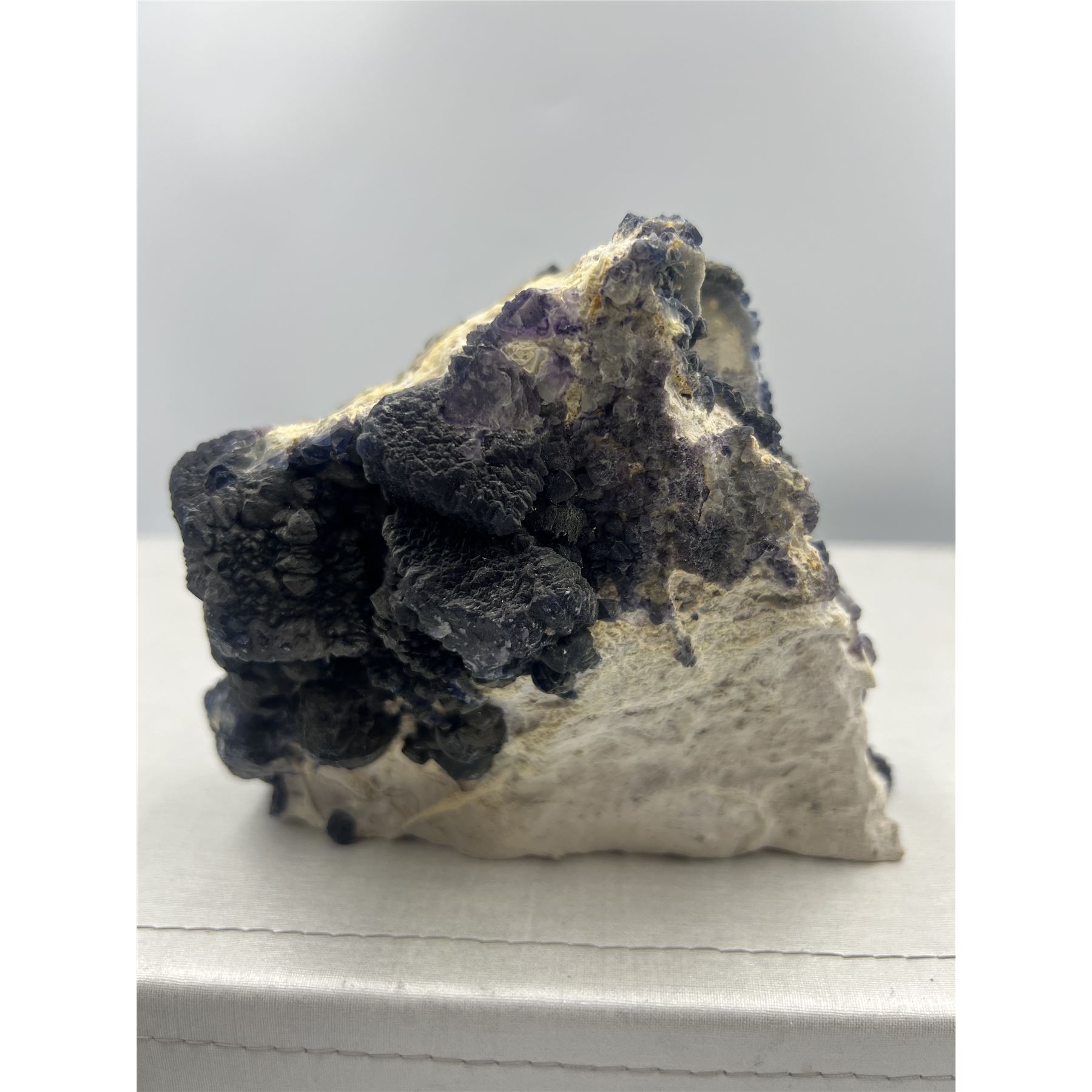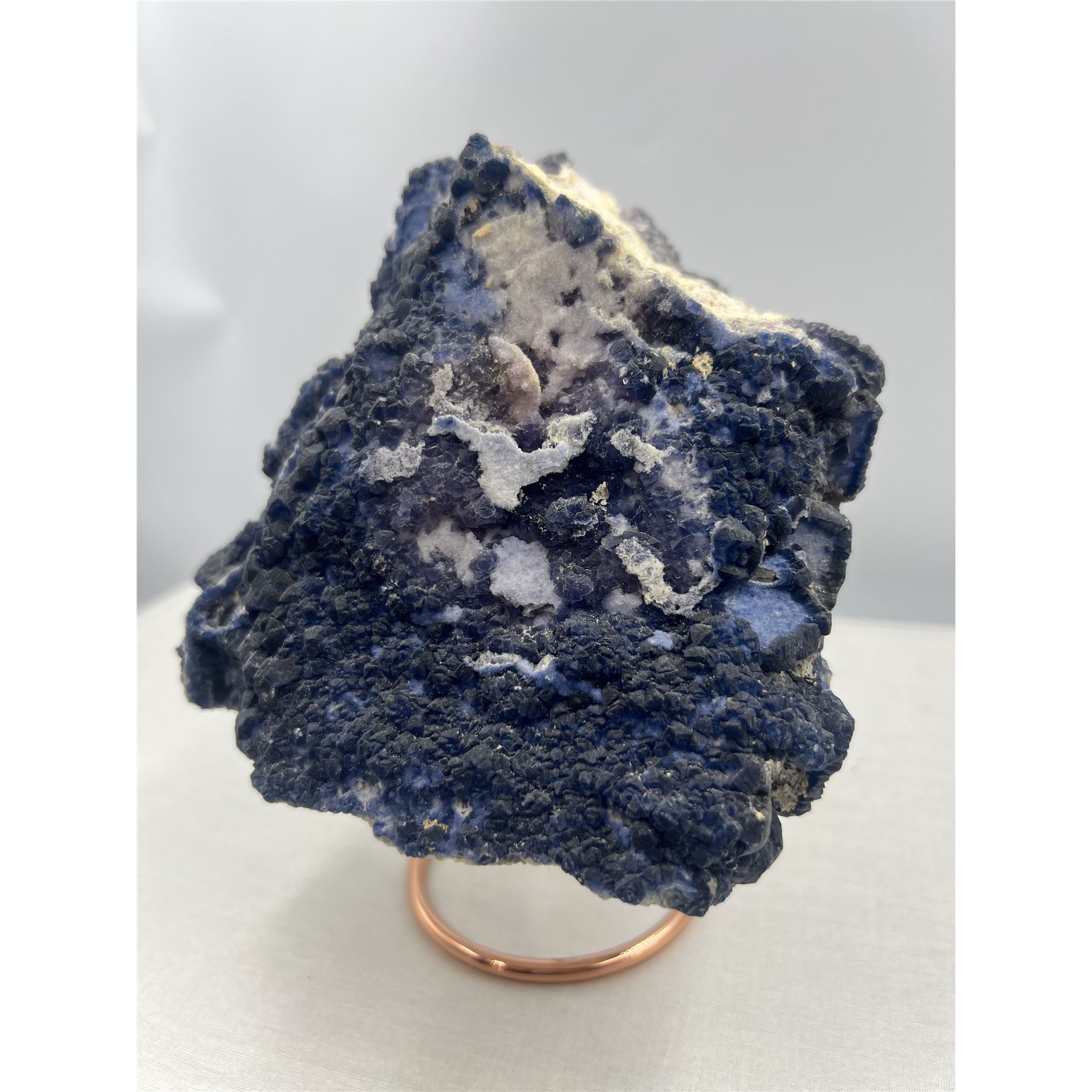 6 X 8 INCH BLUE BERRY FLUORITE SPECIMEN ON STAND