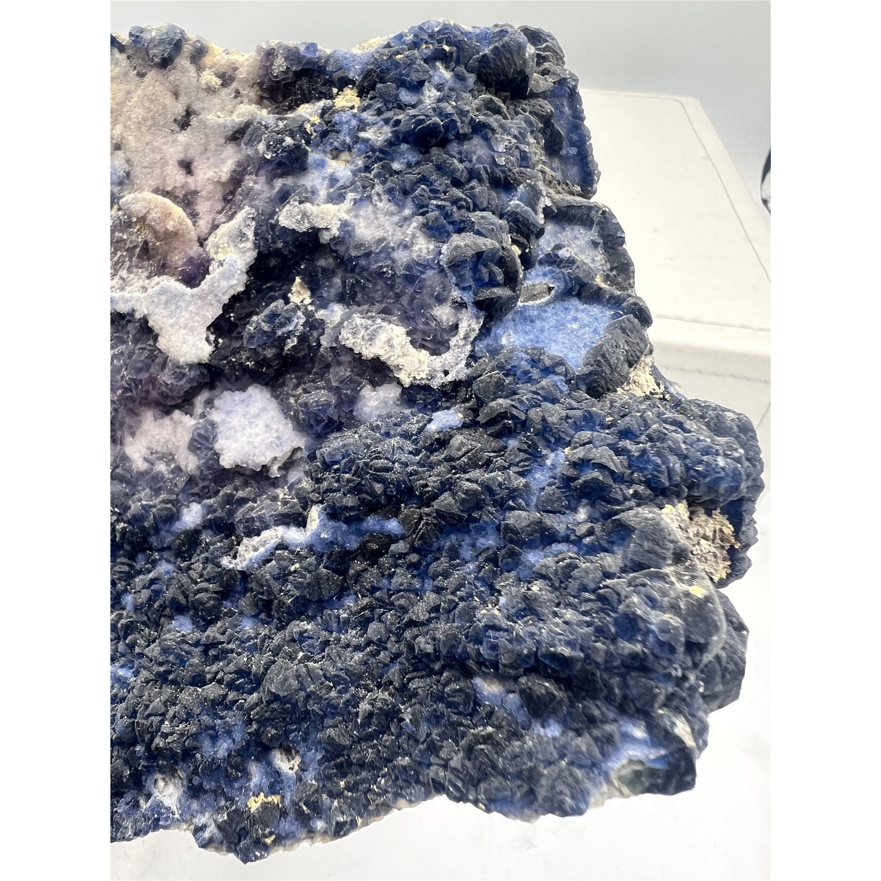 6 X 8 INCH BLUE BERRY FLUORITE SPECIMEN ON STAND