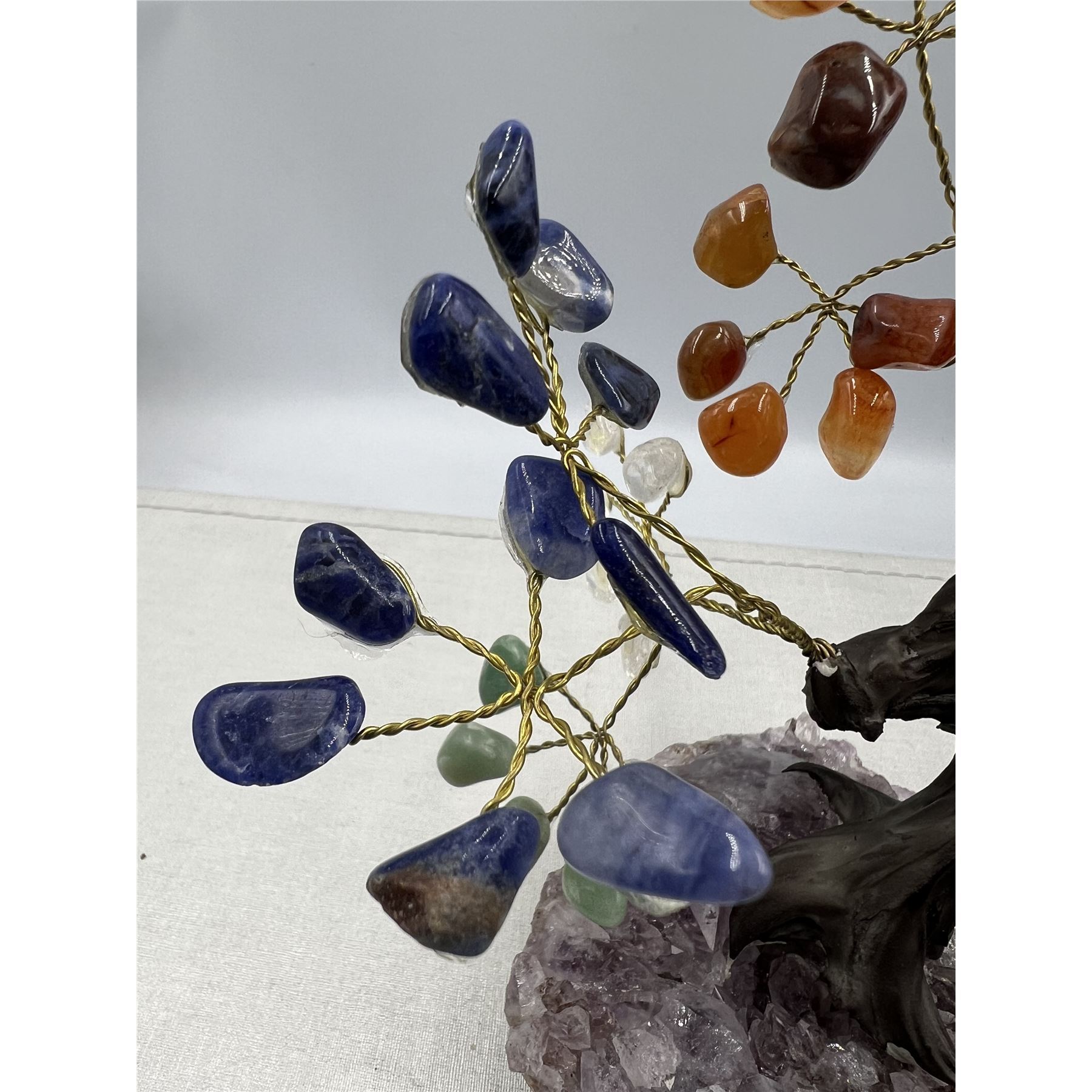 7.5 X 7.5 INCH 7 CHRYSTAL CHAKRA WITH AMETHYST BASEBONSAI TREE HANDMADE