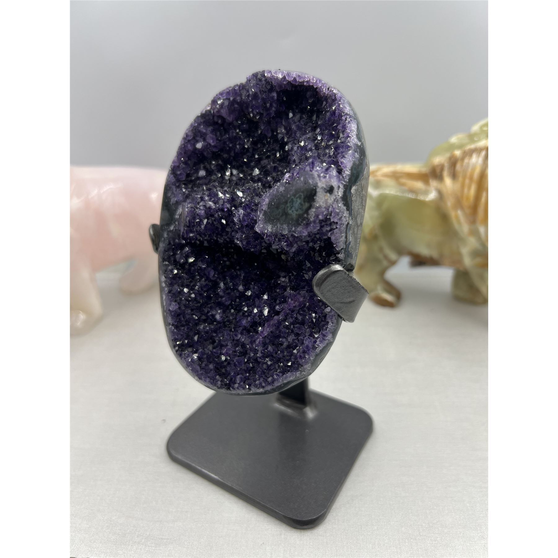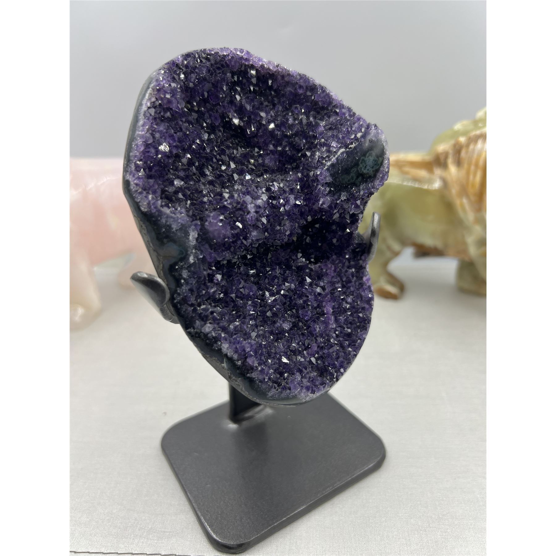 7 X 3.5 INCH HIGH GRADE URUGYAN AMETHYST CLUSTER ON METAL STAND