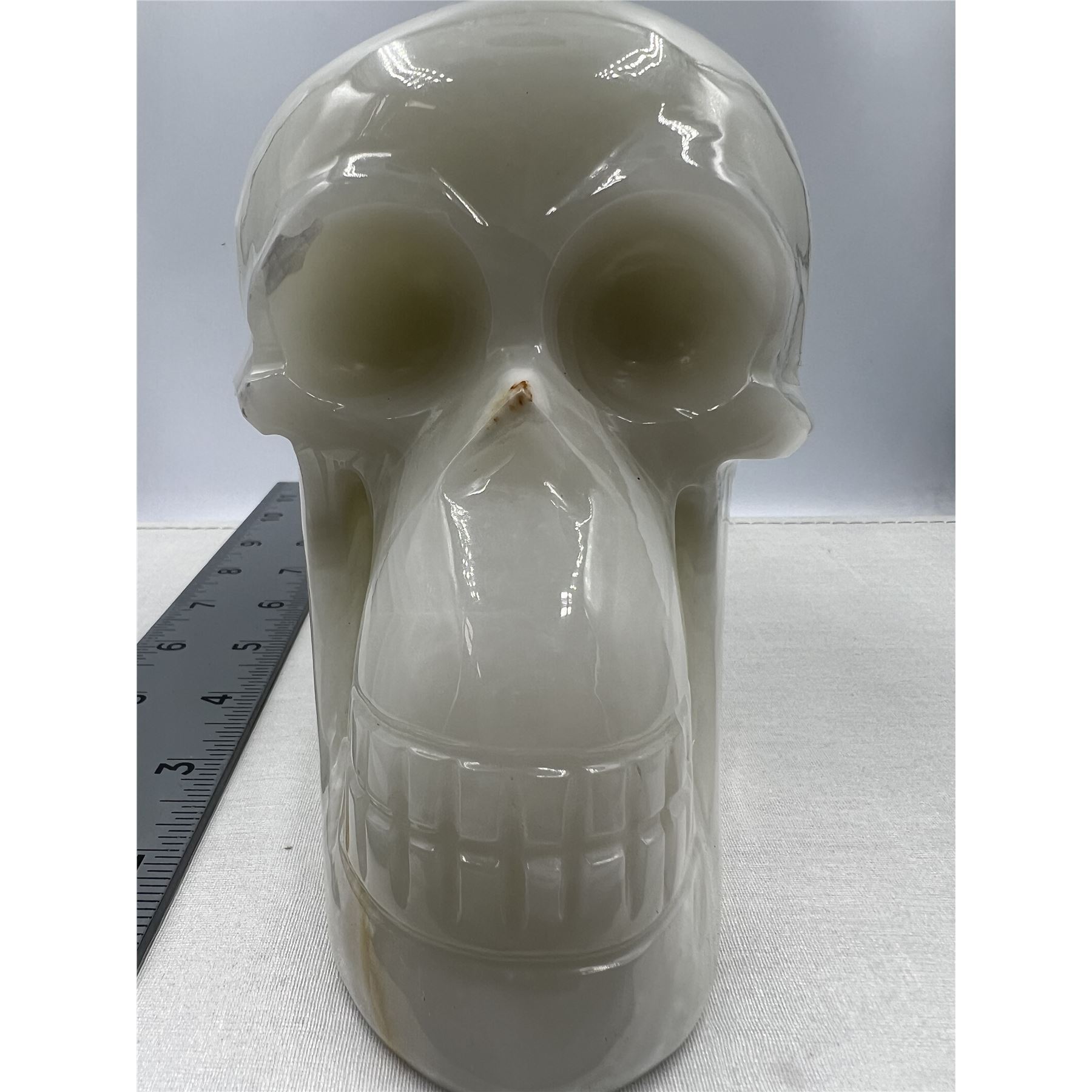 7 X 5.3 INCH LARGE ONXY CLACITE SKULL RETAIL $1200