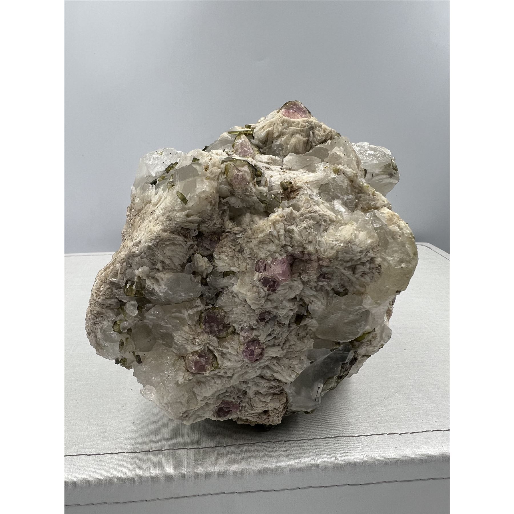 7 X 7 INCH GREEN AND PINK TOURMALINE IN CLEAR QUARTZ MATRIX