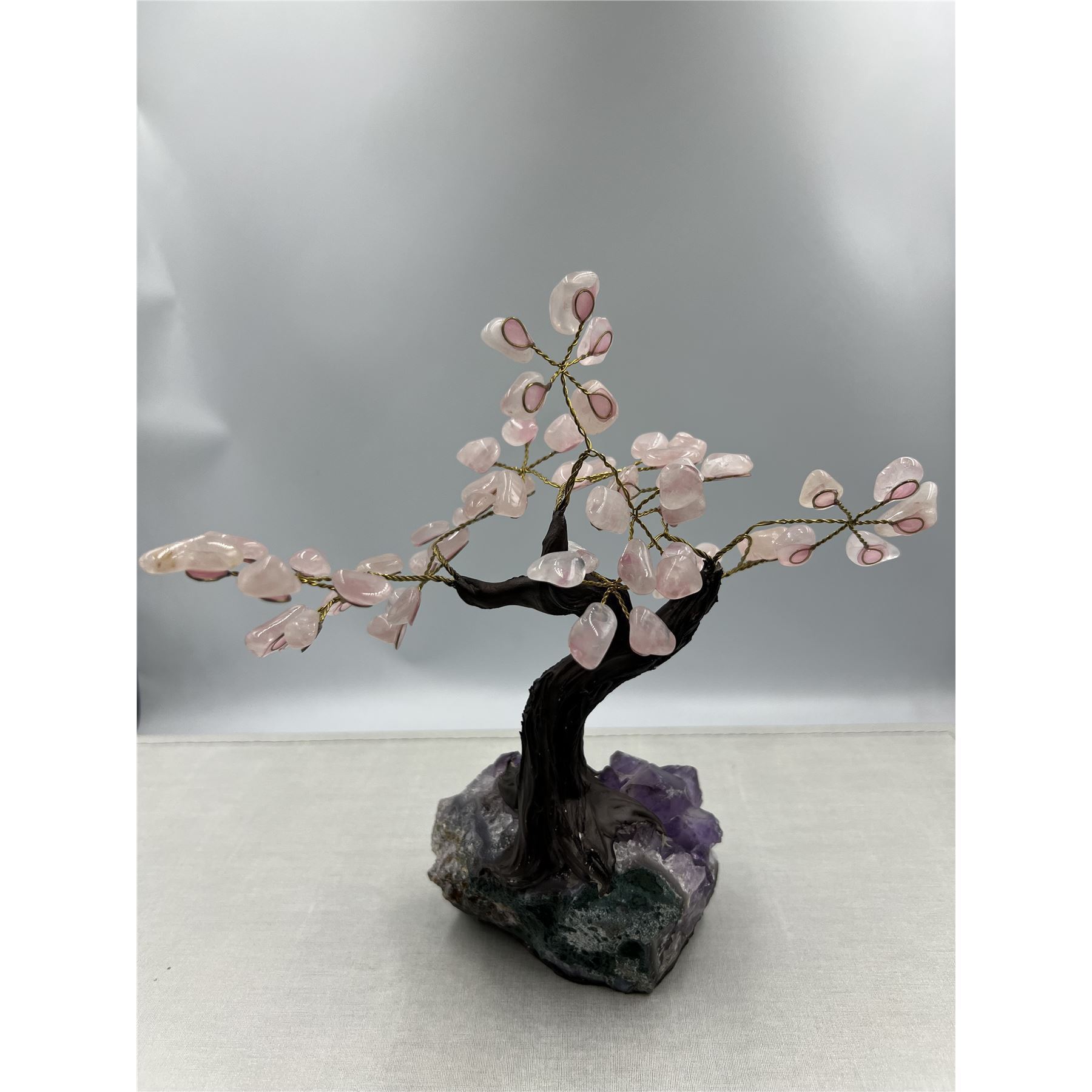 8 X 8 INCH ROSE QUARTZ GEM CRYSTAL TREE WITH AMETHYST BASE HANDMADE