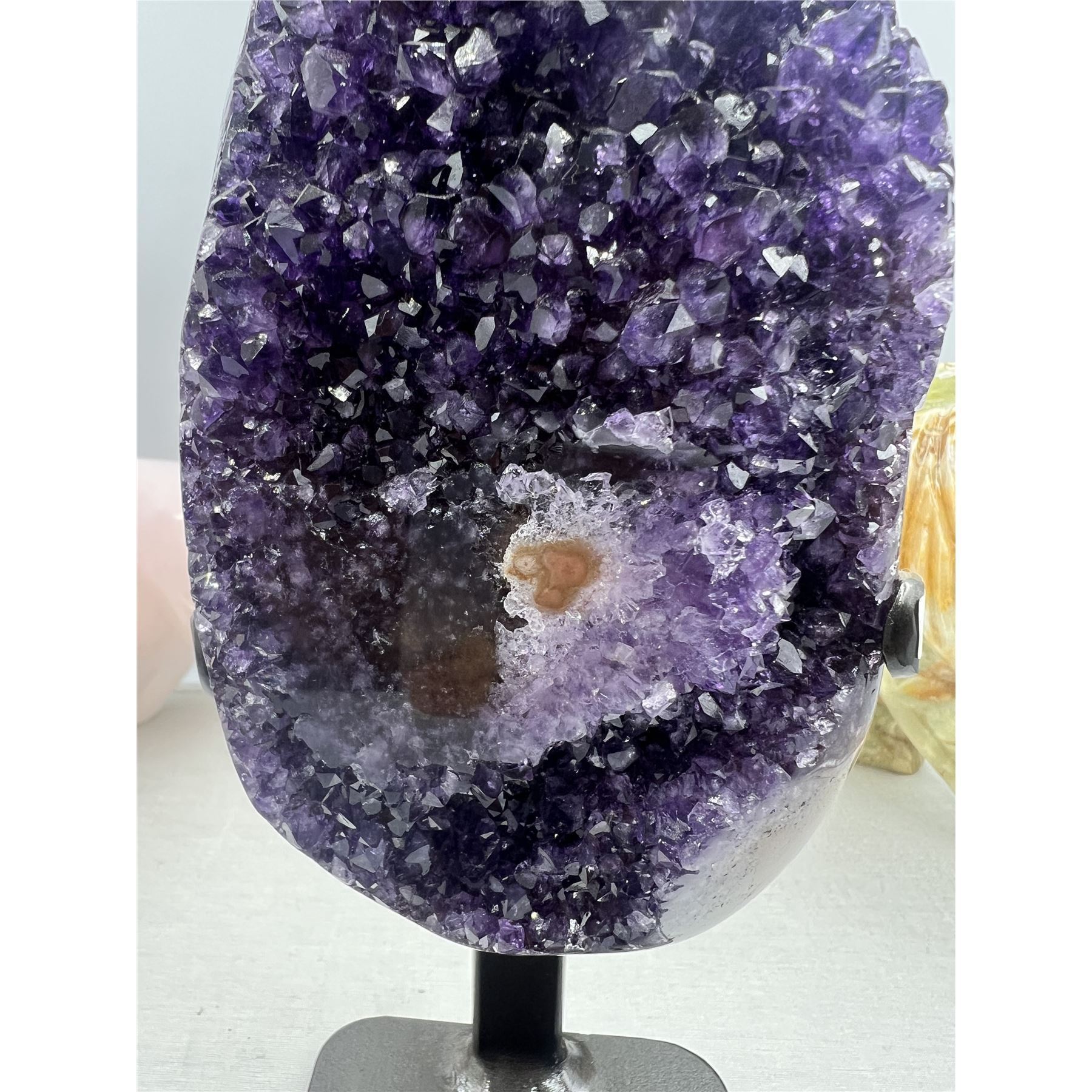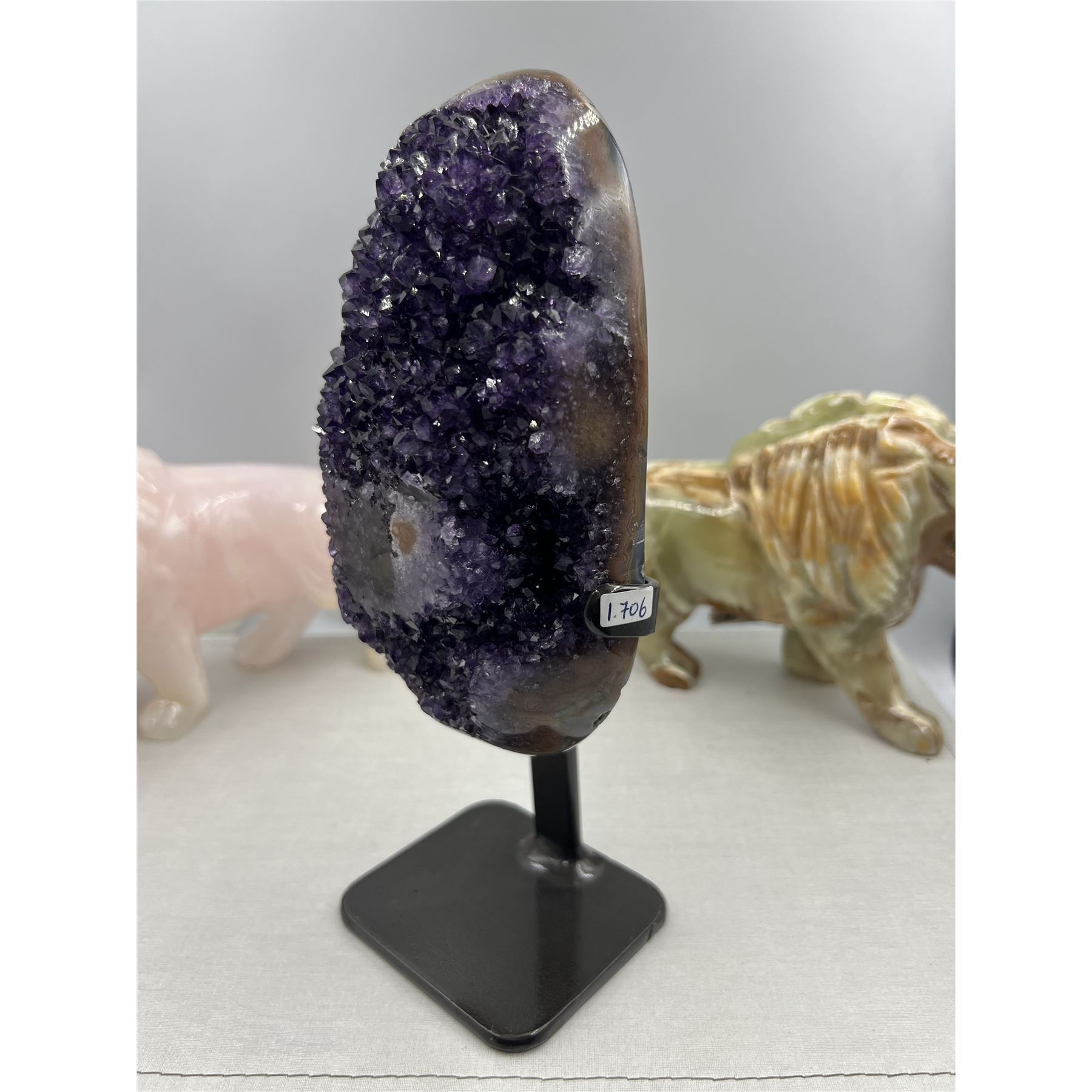 9.5 X 3.8 INCH HIGH GRADE URUGYAN AMETHYST CLUSTER ON METAL STAND