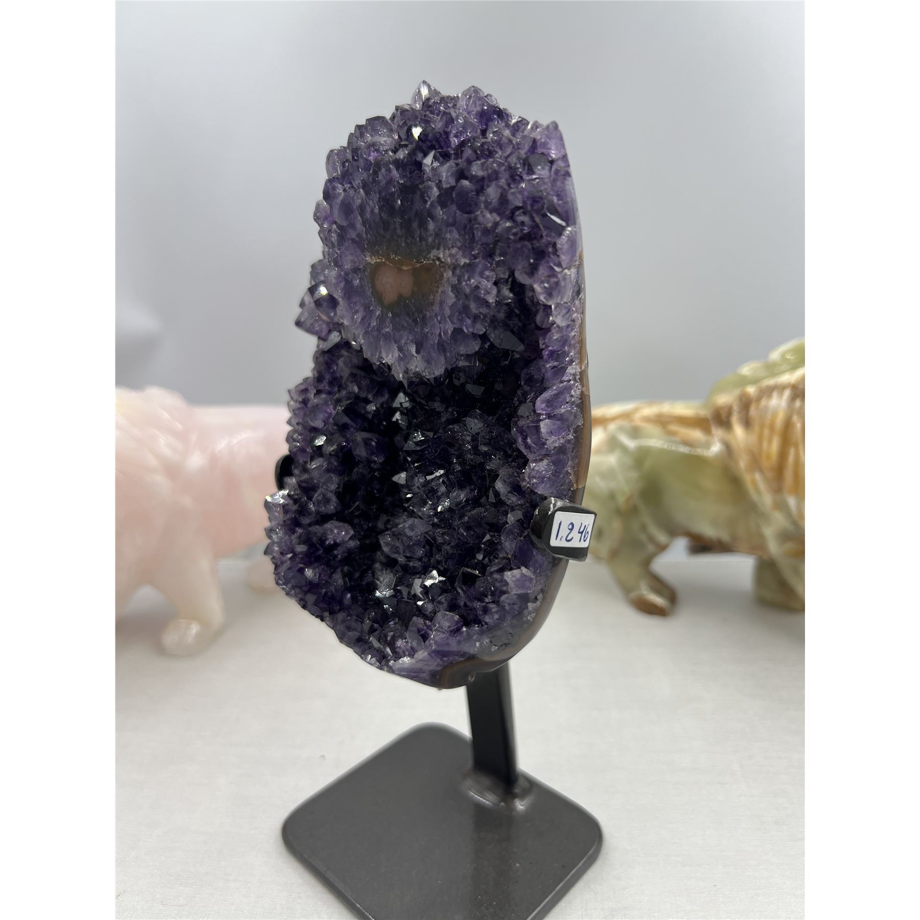 9 X 4 INCH HIGH GRADE URUGYAN AMETHYST CLUSTER ON METAL STAND