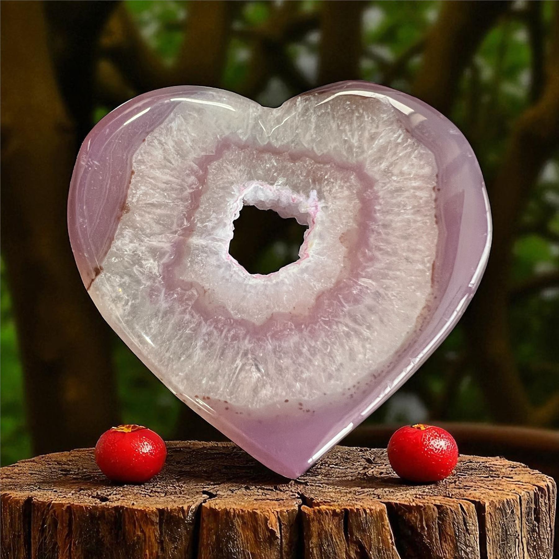 Agate Heart Shaped Stone with natural hole 3.5 inch