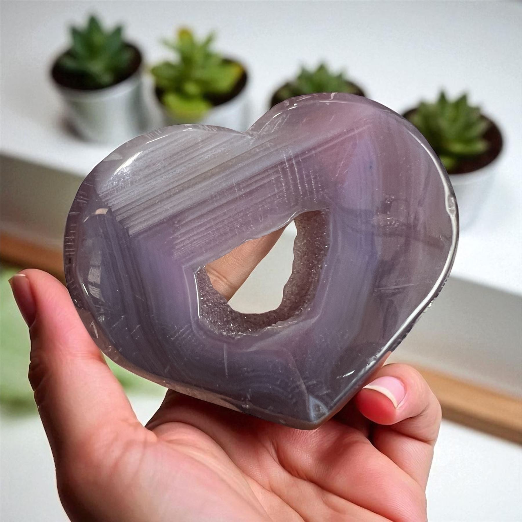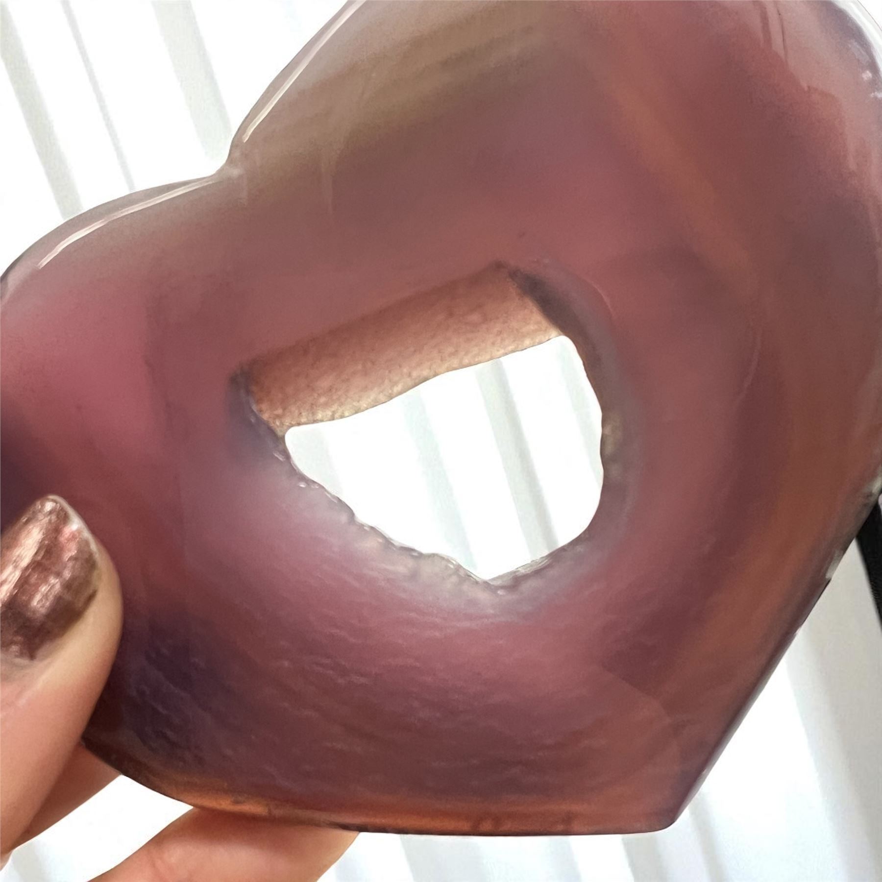 Agate Heart Shaped Stone with natural hole 3 Inch