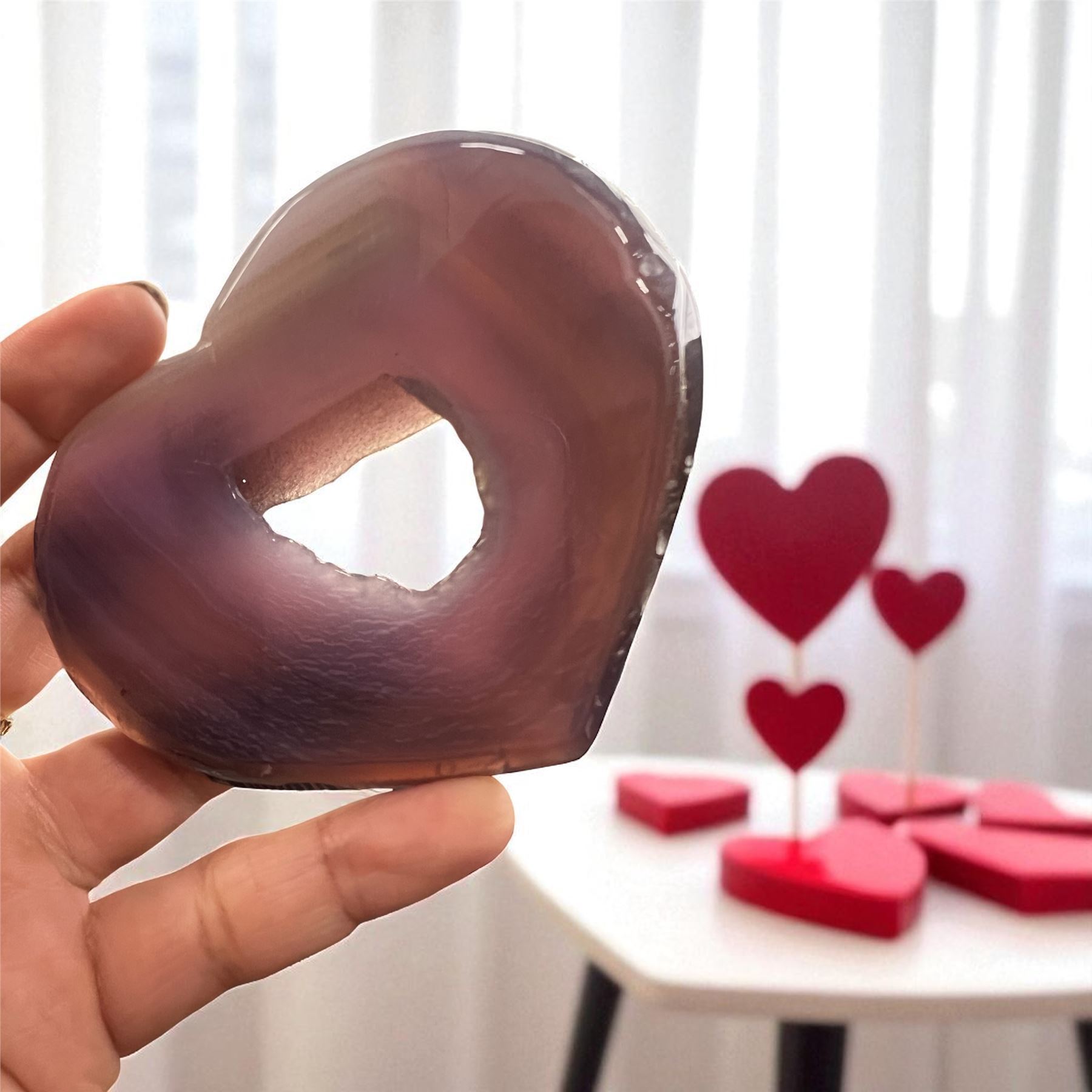 Agate Heart Shaped Stone with natural hole 3 Inch