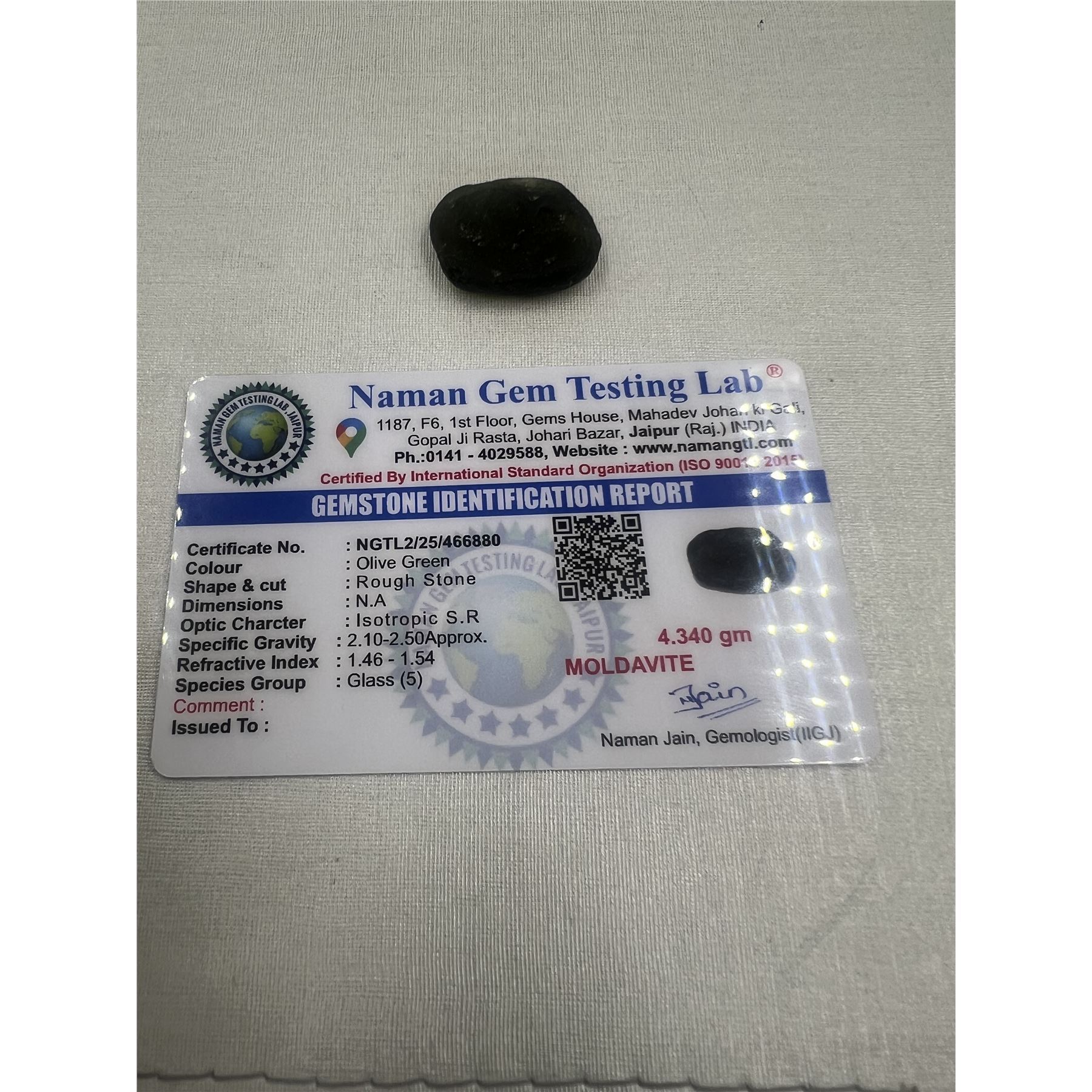 Genuine Moldavite 4.3 Grams Certified